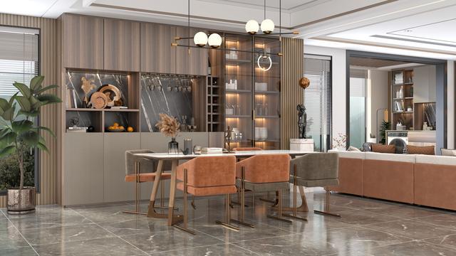 正在第二次装修时,刚毅摒弃盛开式酒柜,直接于餐桌旁定制了一个餐边柜,同样可能摆上几瓶收藏的琼浆用以展现,其余的收纳空间可能用来收纳小家电抑或是极少水壶、水杯、茶叶等物品,这样一来,便不必正在每次用餐前都清理餐桌,为煮好的饭菜腾出摆放的职位了。